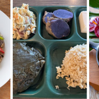 Pulehu Short Ribs, Pulehu Boneless chicken, and grilled local catch of the day fish. Served with furikake rice and choice of salad